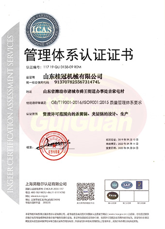 山东桂冠机械有限公司成立于2008年,注册资金1600万元,现有员工200多人,中高级技术管理人员45人,占地面积27000多平方米,生产车间面积12000多平方米。公司具备压力容器产品的设计、制造(证书编号为:TS2237703-2025)、压力管道安装(证书编号为TS3837607-2025)全套压力容器资质;通过国家ISO9001质量管理体系认证、美国ASME认证、欧盟CE认证;拥有建筑安装机电工程专业承包叁级资质、建筑工程施工总承包叁级资质及对外贸易经营出口权…